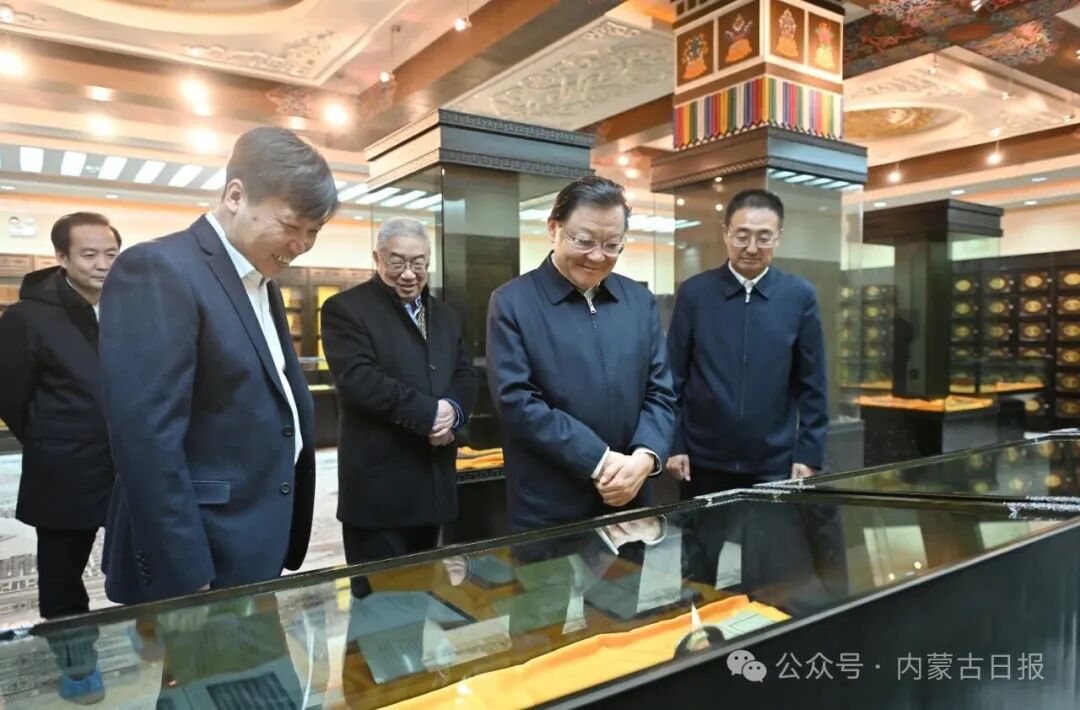 初冬的内蒙古大学校园,薄雪覆盖、朝气涌动。在省部共建草原家畜生殖调控与繁育国家重点实验室、功能介孔材料实验室,王伟中认真听取生物育种、高寒地区电池储能系统研发等进展情况介绍,与科研人员深入交流,关切询问相关技术市场化应用前景。他说,内蒙古推进科技创新,要坚持有所为有所不为,聚焦特色产业和优势领域脚踏实地地干,一定大有作为。希望内蒙古大学在“双一流”建设中强化使命担当,紧扣生物育种、草业乳业、储能等优势特色学科,沉下心来攻克关键核心技术,努力取得更多成果。要坚持以科技创新需求为牵引,主动与科研院所、创新平台、头部企业联手,加大科研设施开放共享力度,引导更多有实力的企业投入研发,推动更多科研成果从实验室走向生产线。要广开进贤之路、广纳天下英才,做好筑巢引才、以才引才、为才搭台工作,确保人才引进来、留得住、用得好。在图书馆、蒙古文古籍文献展阅室,王伟中仔细察看馆藏文献,详细询问图书文献资源建设、研究开发等工作,叮嘱有关部门要牢记习近平总书记殷切嘱托,以铸牢中华民族共同体意识为主线,切实加强对蒙古文古籍的搜集、整理与保护,挖掘弘扬蕴含其中的民族团结进步思想内涵,引导各族人民牢固树立“四个与共”理念。