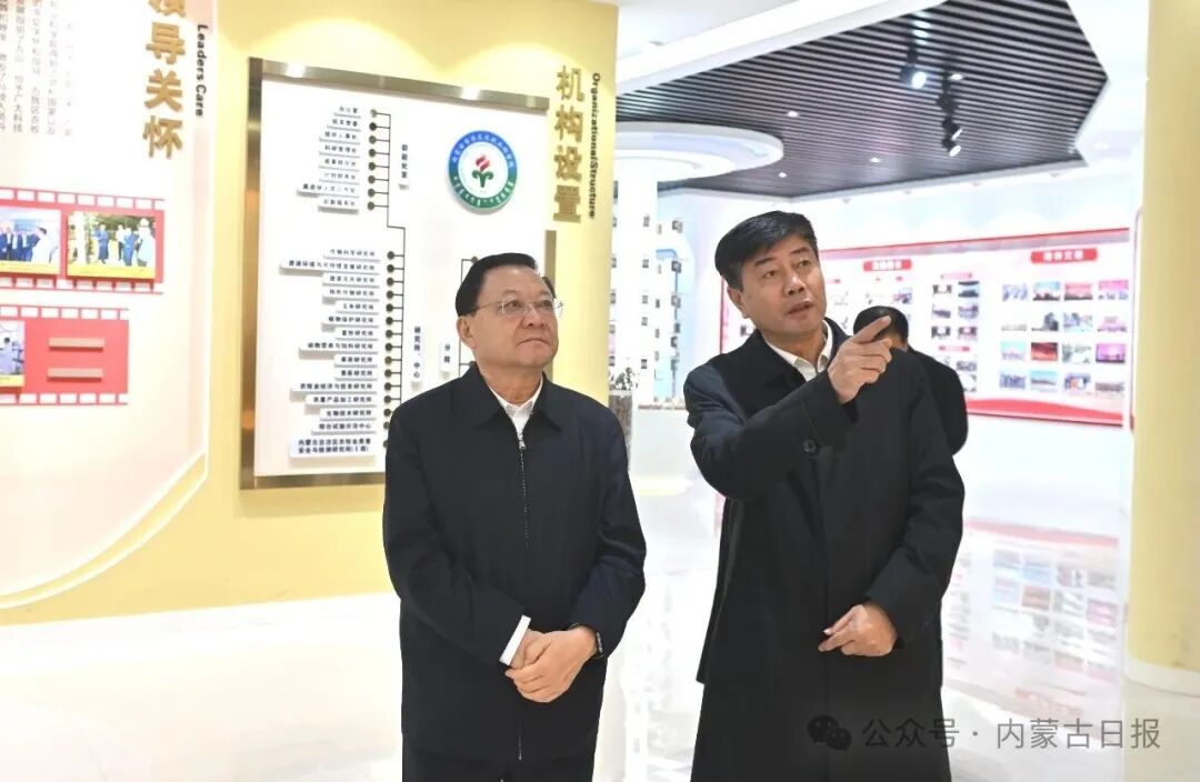 在自治区农牧业科学院,王伟中先后走进保护性农业研究中心、国家糖料改良中心呼和浩特甜菜改良分中心、畜牧研究所实验室,深入了解科研平台建设、技术攻关进展。他说,建设国家重要农畜产品生产基地,离不开科技创新的有力支撑。要立足内蒙古农牧业发展需求,以市场为导向强化技术创新,培育更多适配本地气候的优质高产粮种、畜种、草种、薯种,健全科研成果转化长效机制,推动农牧业发展向优质高效转型。要加强促进黑土地保护与利用、退化农田生态修复与污染治理等技术攻关,靠科技赋能推动耕地质量提升和农业生态保护。在院史展览厅,王伟中通过图文资料等了解农牧业科学院发展历程,对农牧业科学院多年来取得的科研成果表示充分肯定,强调要积极创造条件,加强人才队伍建设,为农牧业现代化发展提供科技支撑。