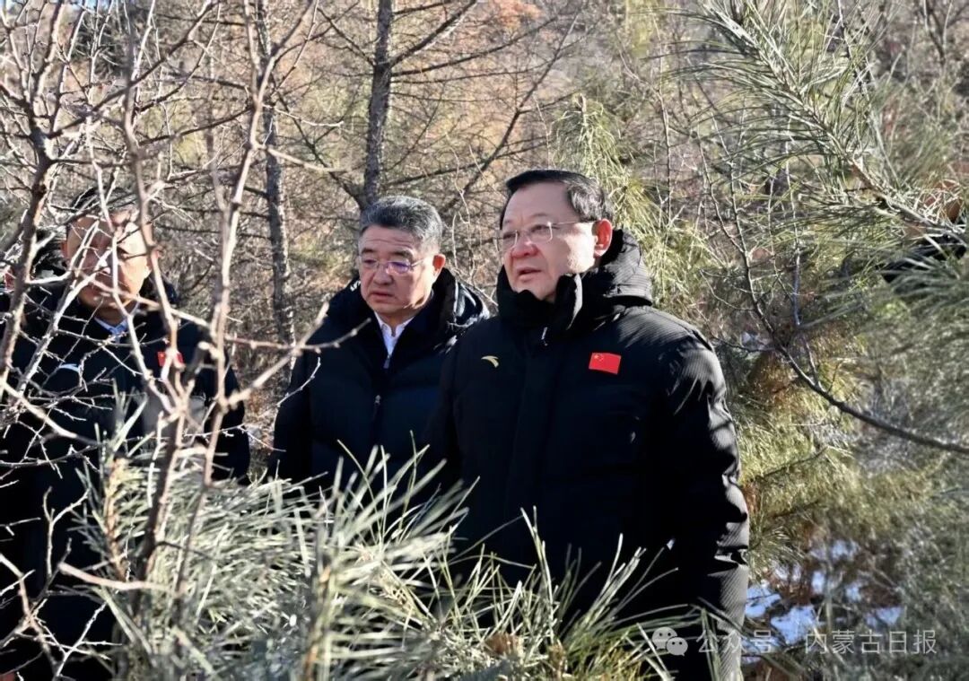 1月29日,自治区党委书记、人大常委会主任王伟中来到马鞍山林场,沿着栈道边走边看,仔细察看林木长势,详细询问林场生产经营情况。草原云·内蒙古新闻网记者 马建兵 摄