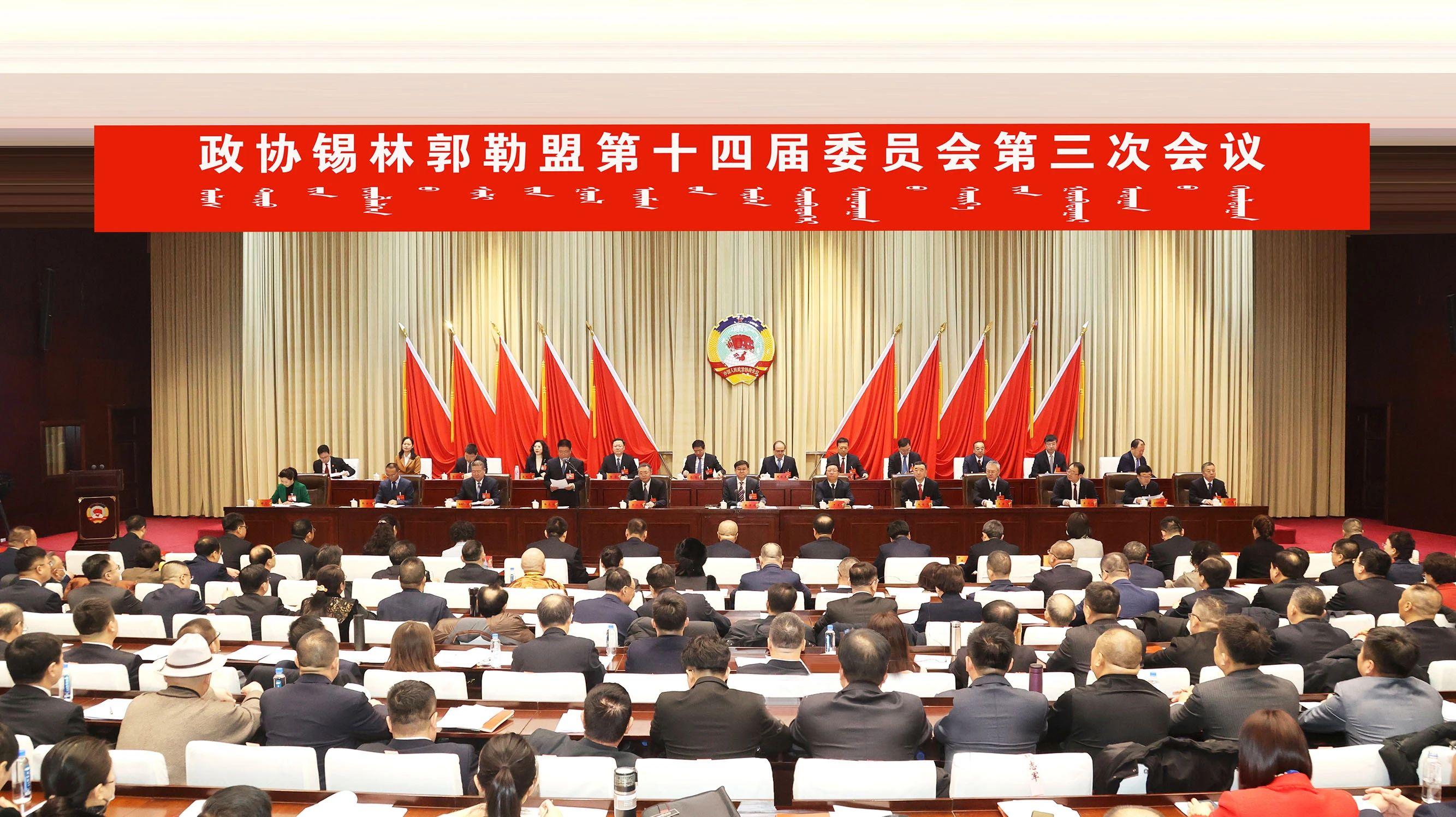 1月19日,政协锡林郭勒盟第十四届委员会第三次会议在锡林浩特开幕,传达学习中央经济工作会议、中国共产党内蒙古自治区第十一届委员会第七次全体会议暨全区经济工作会议、中共锡林郭勒盟委员会2023年第4次(扩大)会议暨全盟经济工作会议精神,听取政协锡林郭勒盟第十四届委员会常务委员会工作报告,听取政协锡林郭勒盟第十四届委员会常务委员会关于十四届二次会议以来提案工作情况的报告,听取盟行署关于全盟经济社会发展情况的通报,审议通过政协锡林郭勒盟第十四届委员会第三次会议议程。