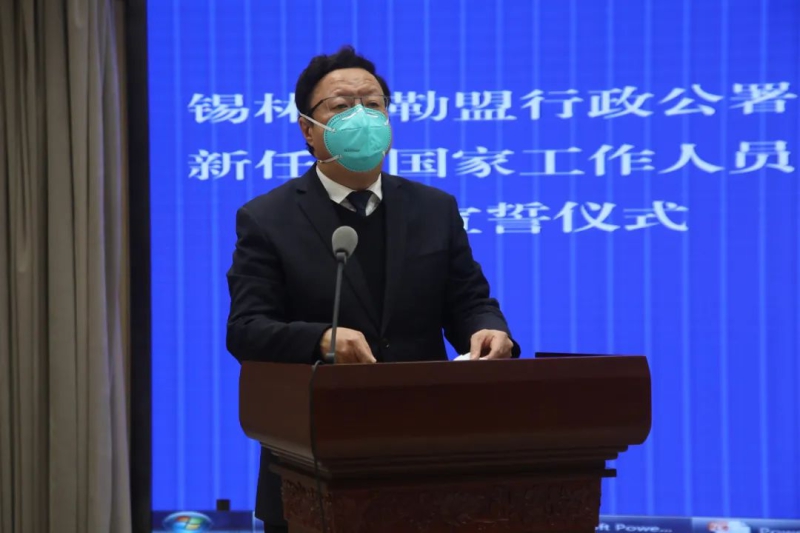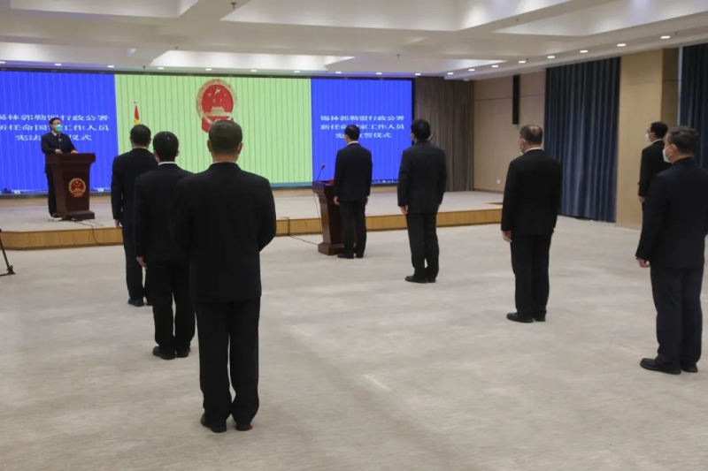 12月29日上午,行署举行新任命国家工作人员宪法宣誓仪式。盟委副书记、盟长罗青监誓并讲话,盟委委员、副盟长吴庆华领誓。